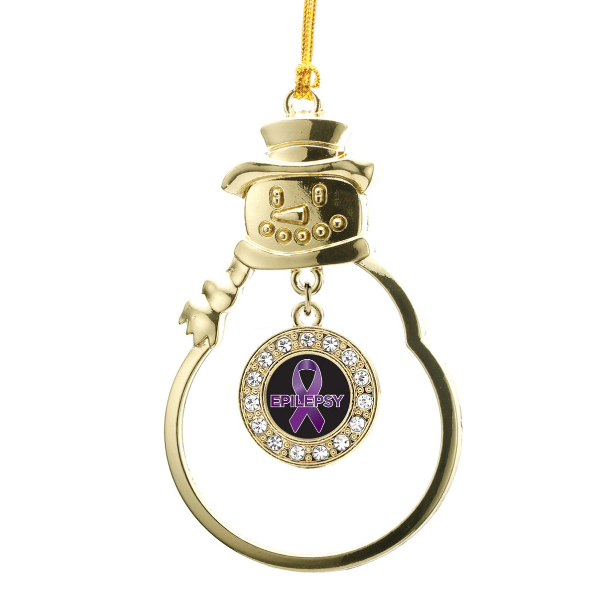 Gold Epilepsy Awareness Circle Charm Snowman Ornament
