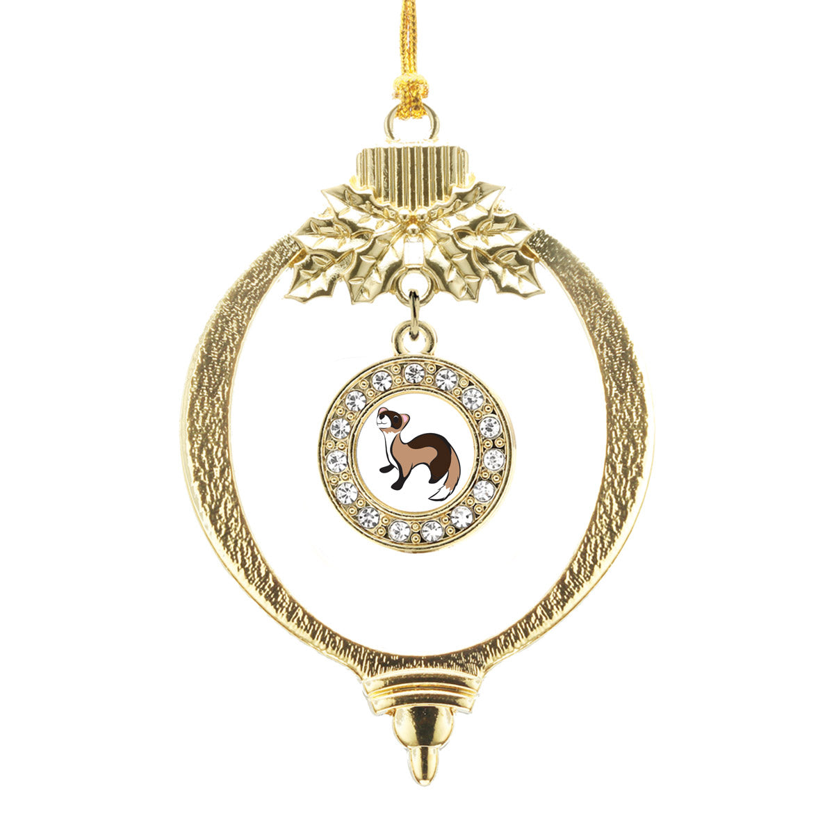 Our sparkling holiday ornament, equipped with a stylish silver rope and the Ferret circle charm, is crafted from white metal with a gold plated finish and accented with cubic zirconia stones.