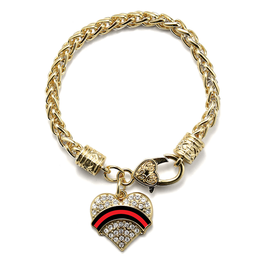 Gold Fire Department Support Pave Heart Charm Braided Bracelet