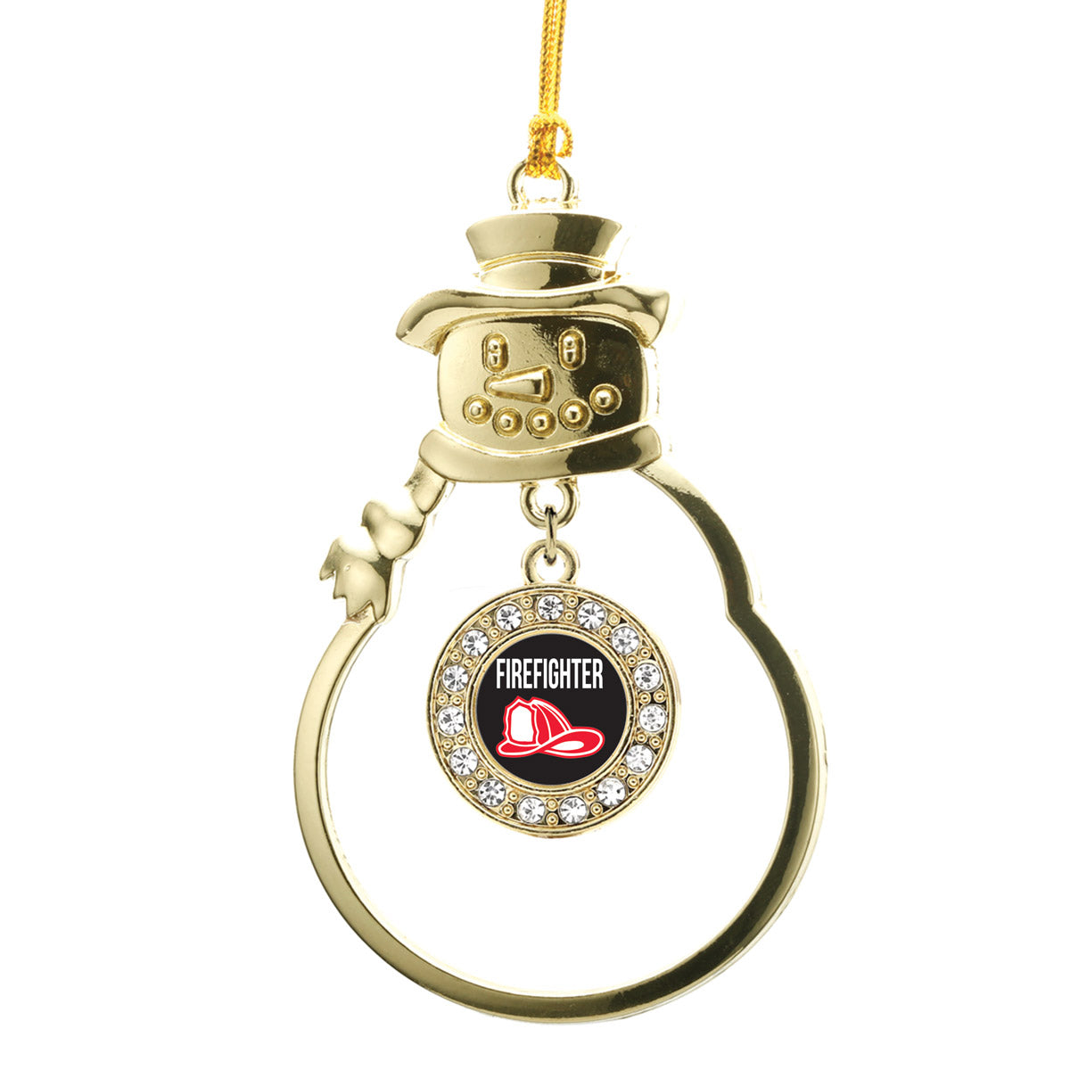 Gold Firefighter Circle Charm Snowman Ornament