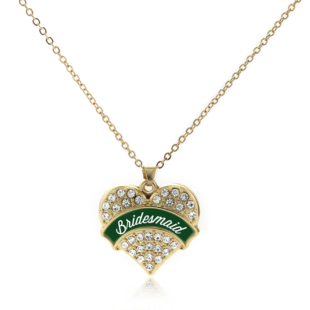 Gold Forest Green Bridesmaid Pave Heart Charm Classic Necklace