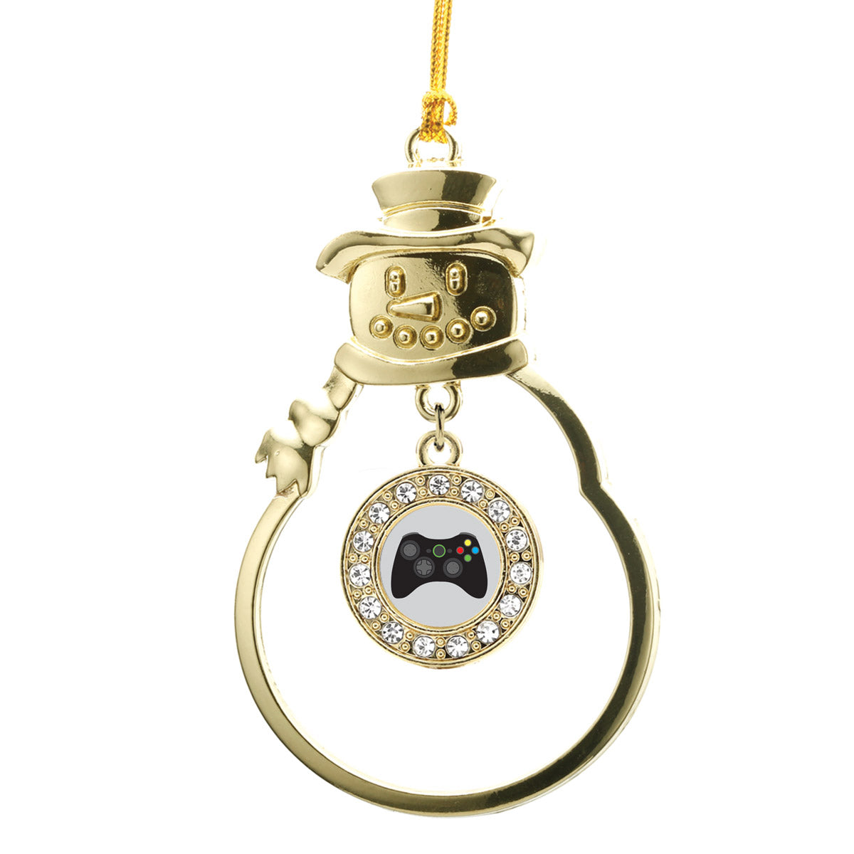 Gold Gamer Girl Circle Charm Snowman Ornament