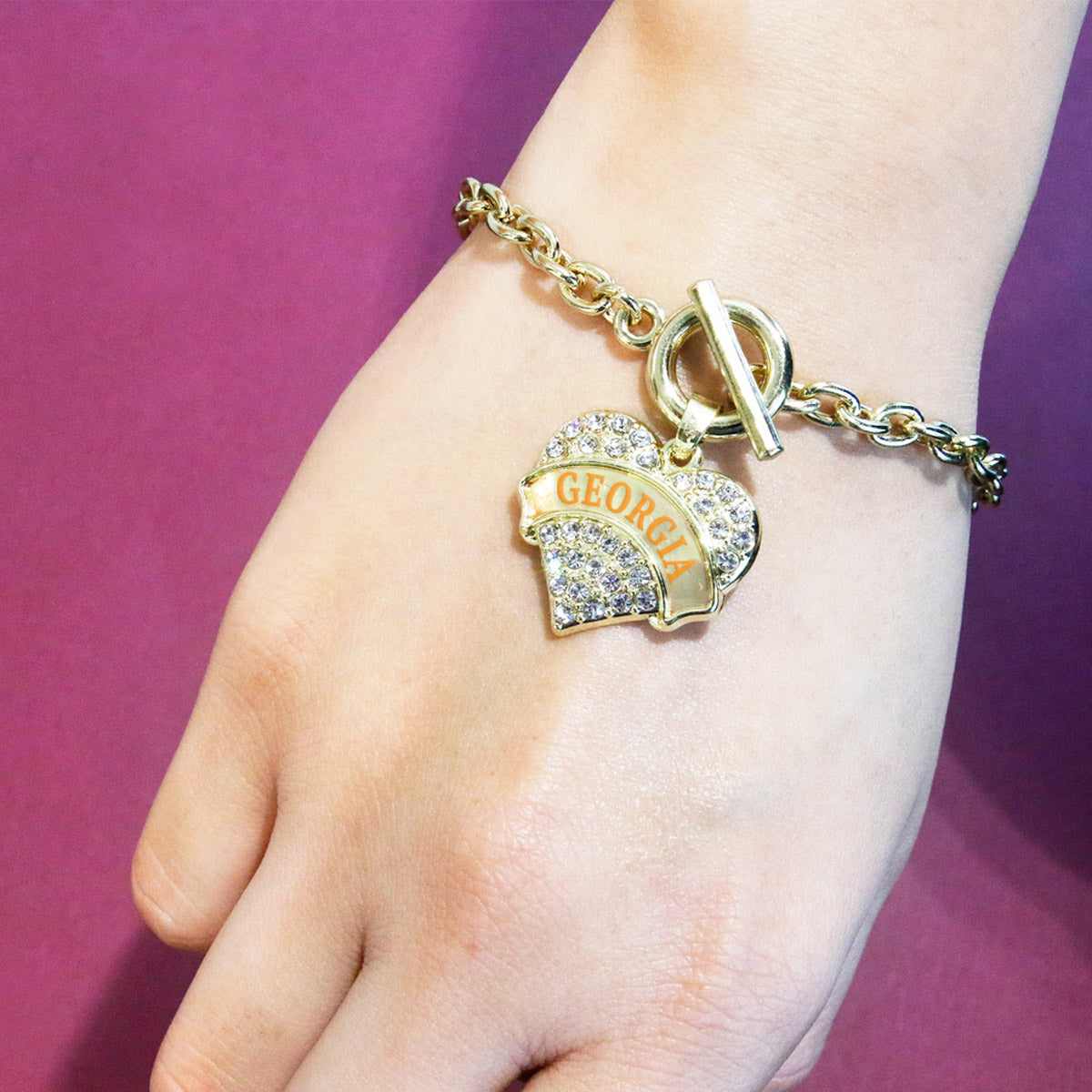 Gold Georgia Pave Heart Charm Toggle Bracelet