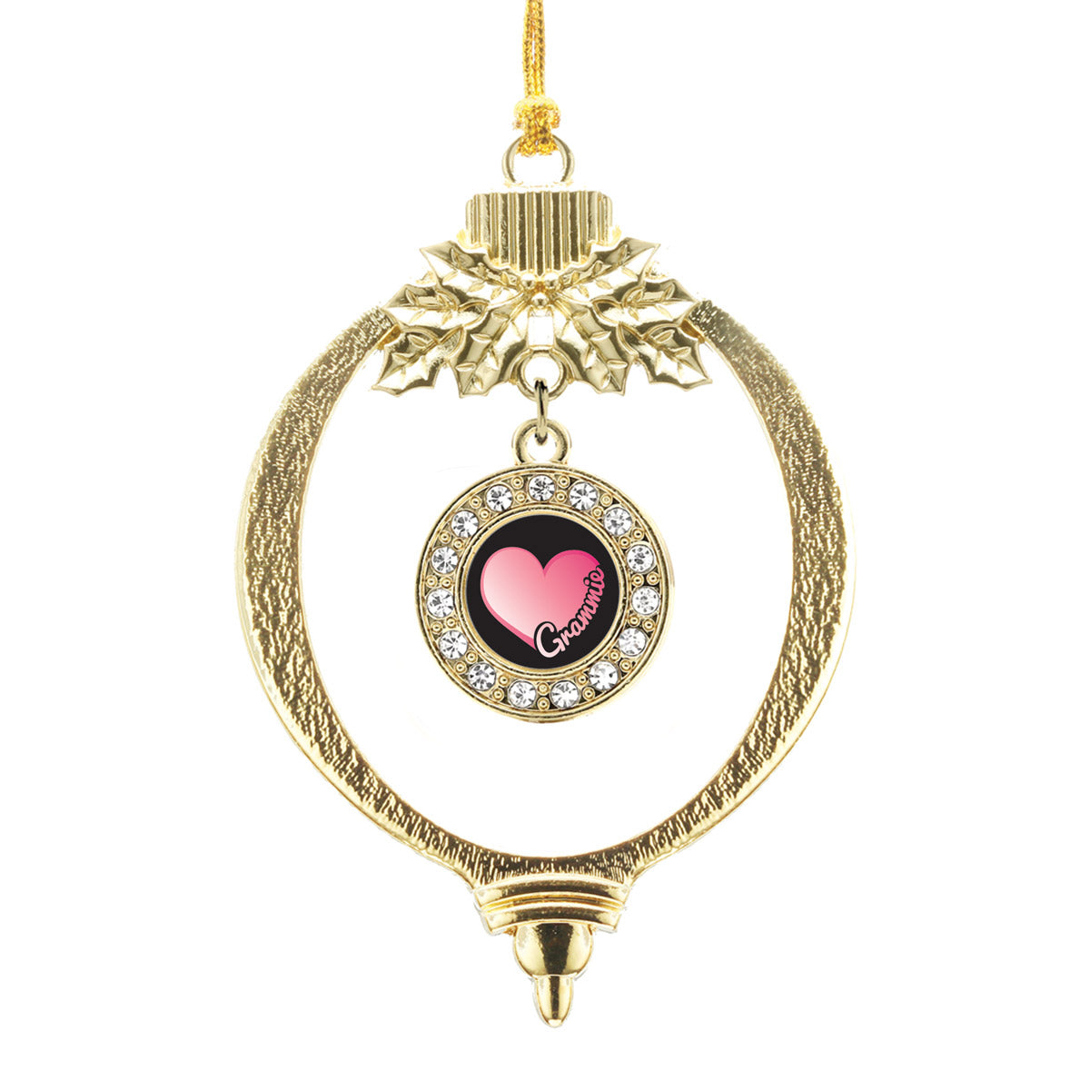 Our sparkling holiday ornament, equipped with a stylish silver rope and the Grammie circle charm, is crafted from white metal with a gold plated finish and accented with cubic zirconia stones.