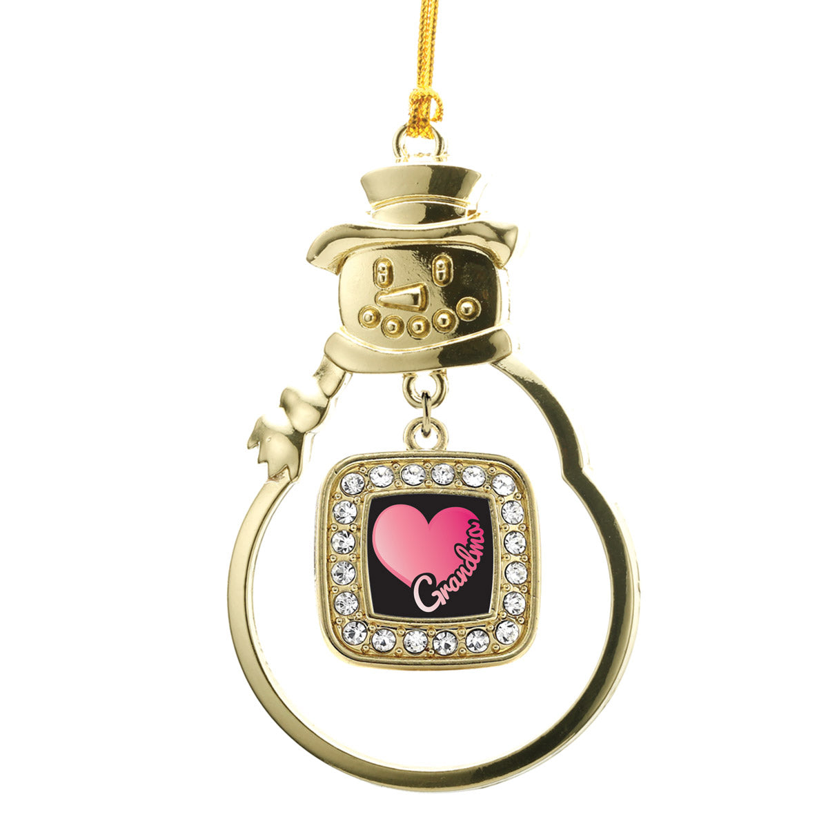 Gold Grandma Square Charm Snowman Ornament
