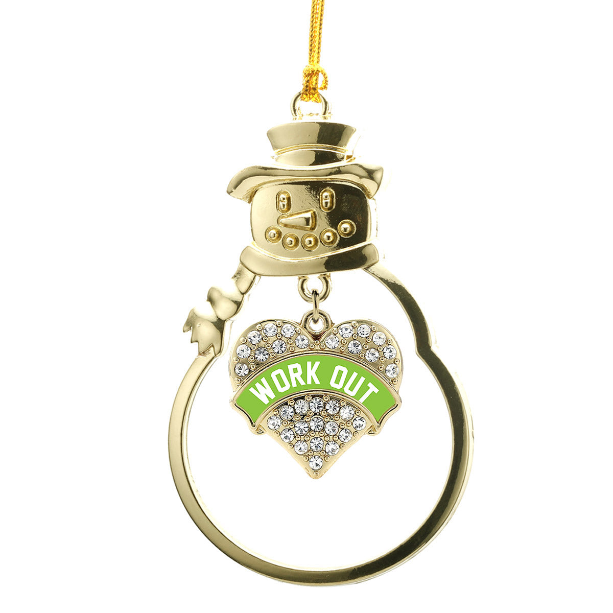 Gold Green Work Out Pave Heart Charm Snowman Ornament