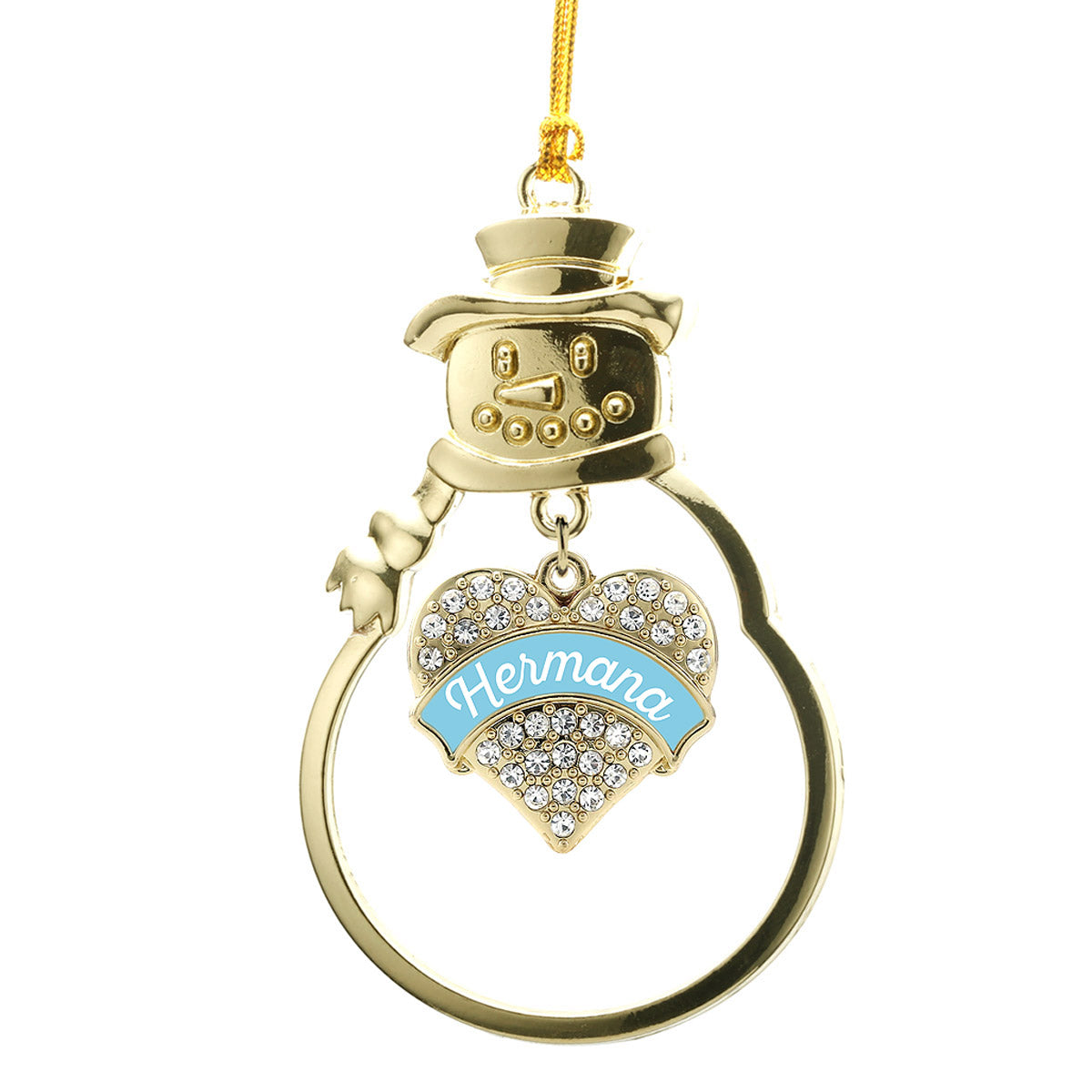 Gold Hermana - Light Blue Pave Heart Charm Snowman Ornament