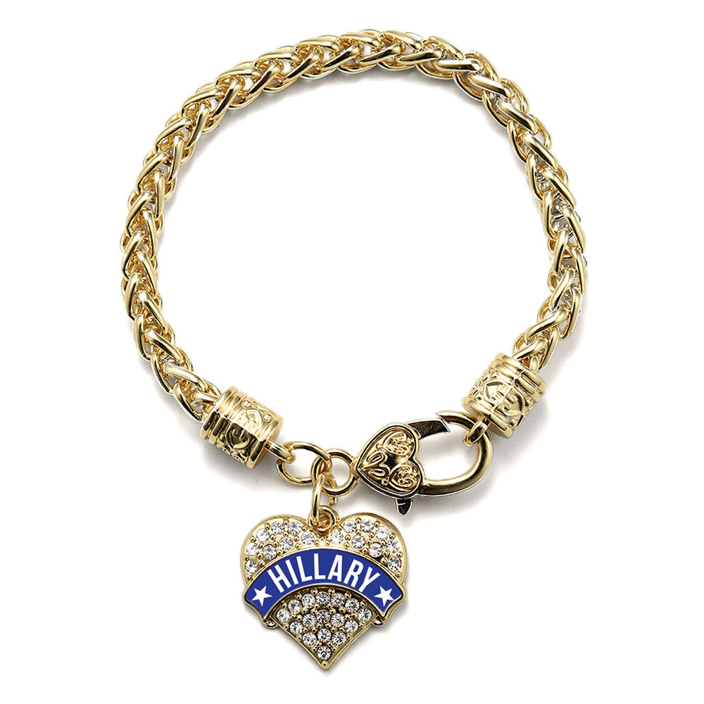 Our sparkling braided bracelet, equipped with a stylish lobster claw clasp and the Hillary Supporter pave heart charm, is crafted from white metal with a gold plated finish and accented with cubic zirconia stones.