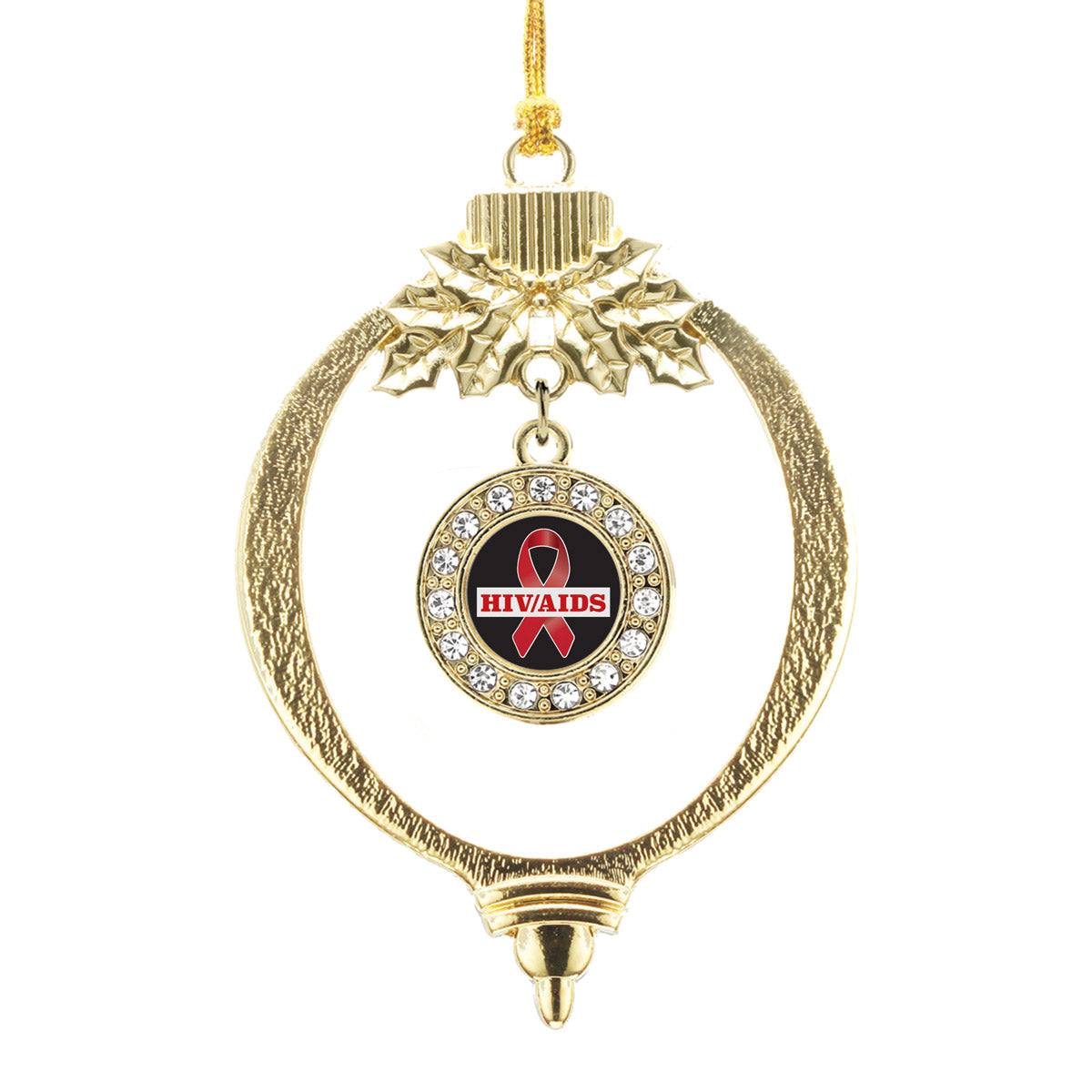 Gold HIV/AIDS Awareness Ribbon Circle Charm Holiday Ornament