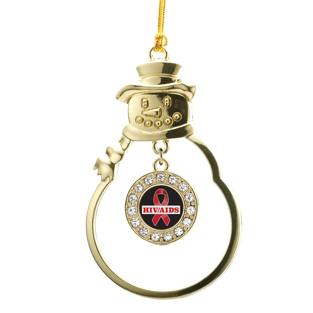 Gold HIV/AIDS Awareness Ribbon Circle Charm Snowman Ornament
