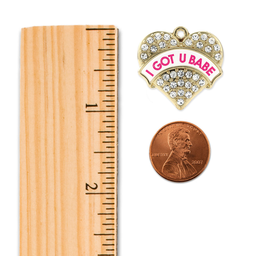 Gold I GOT U BABE White Candy Pave Heart Charm Snowman Ornament