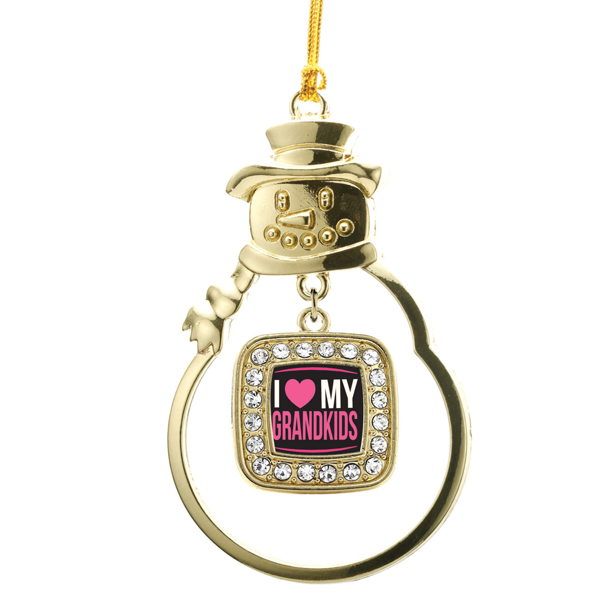 Gold I Love My Grandkids Square Charm Snowman Ornament