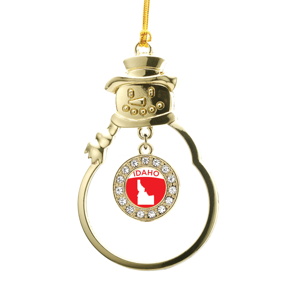 Gold Idaho Outline Circle Charm Snowman Ornament