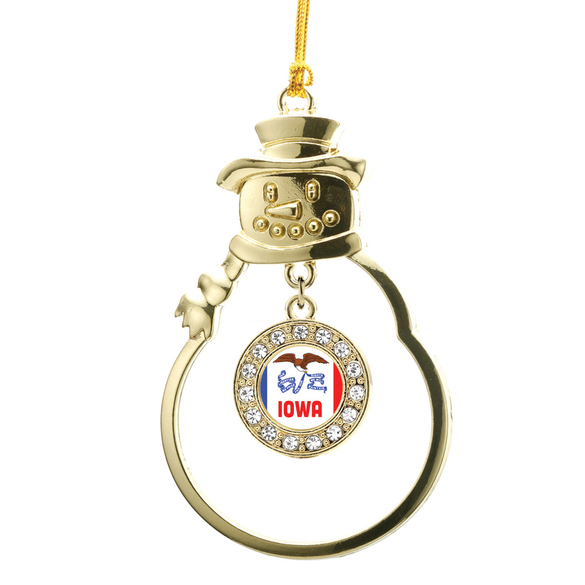 Gold Iowa Flag Circle Charm Snowman Ornament