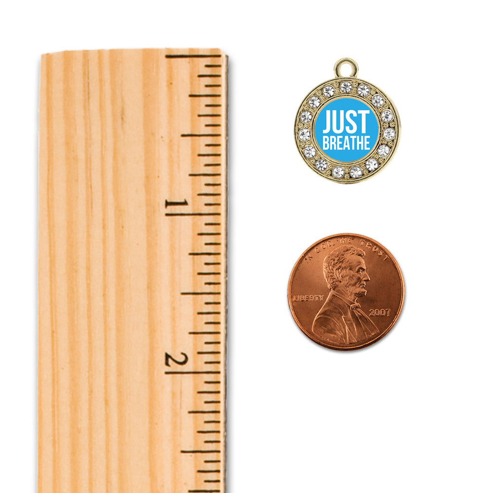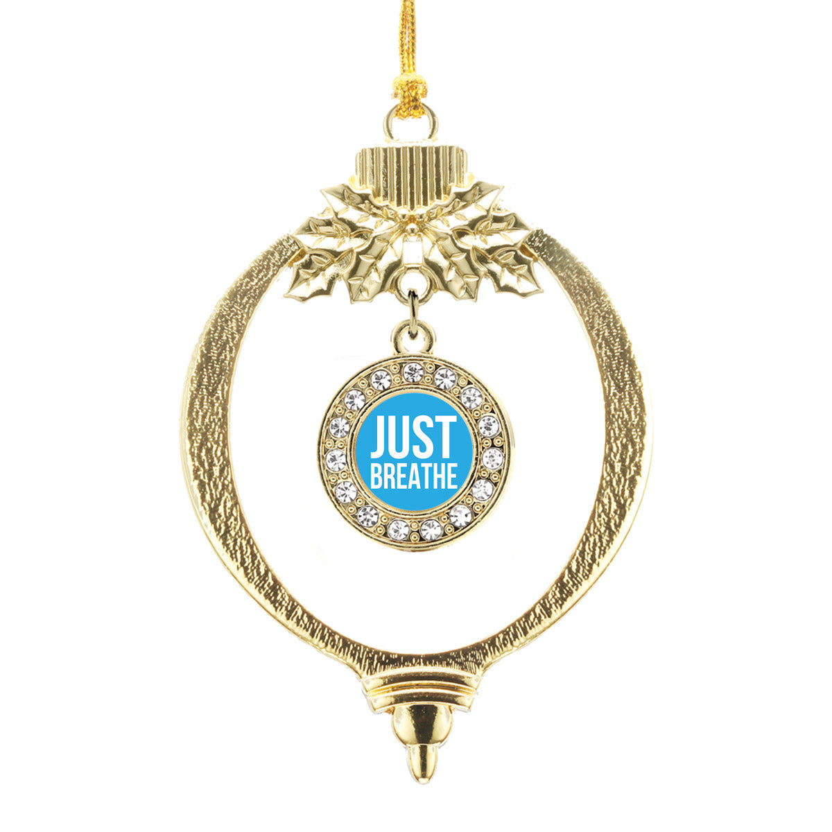 Our sparkling holiday ornament, equipped with a stylish silver rope and the Just Breathe circle charm, is crafted from white metal with a gold plated finish and accented with cubic zirconia stones.