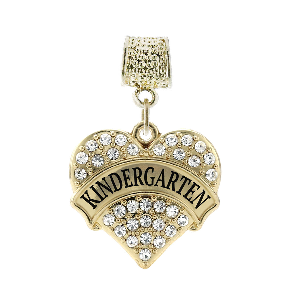 Our sparkling memory charm, equipped with a stylish charm attachment ring and the Kindergarten pave heart charm, is crafted from white metal with a gold plated finish and accented with cubic zirconia stones.
