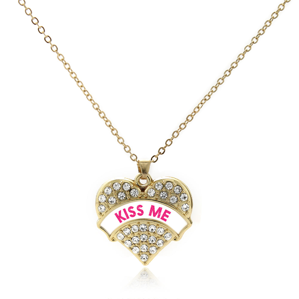 Gold Kiss Me White Candy Pave Heart Charm Classic Necklace