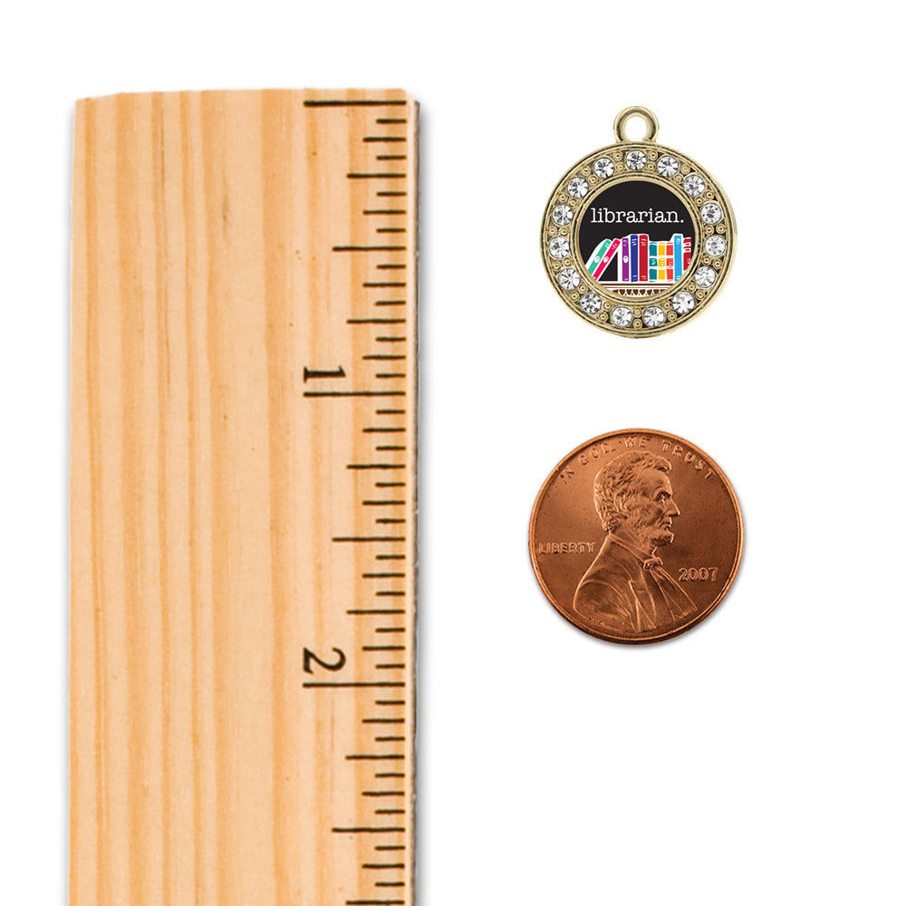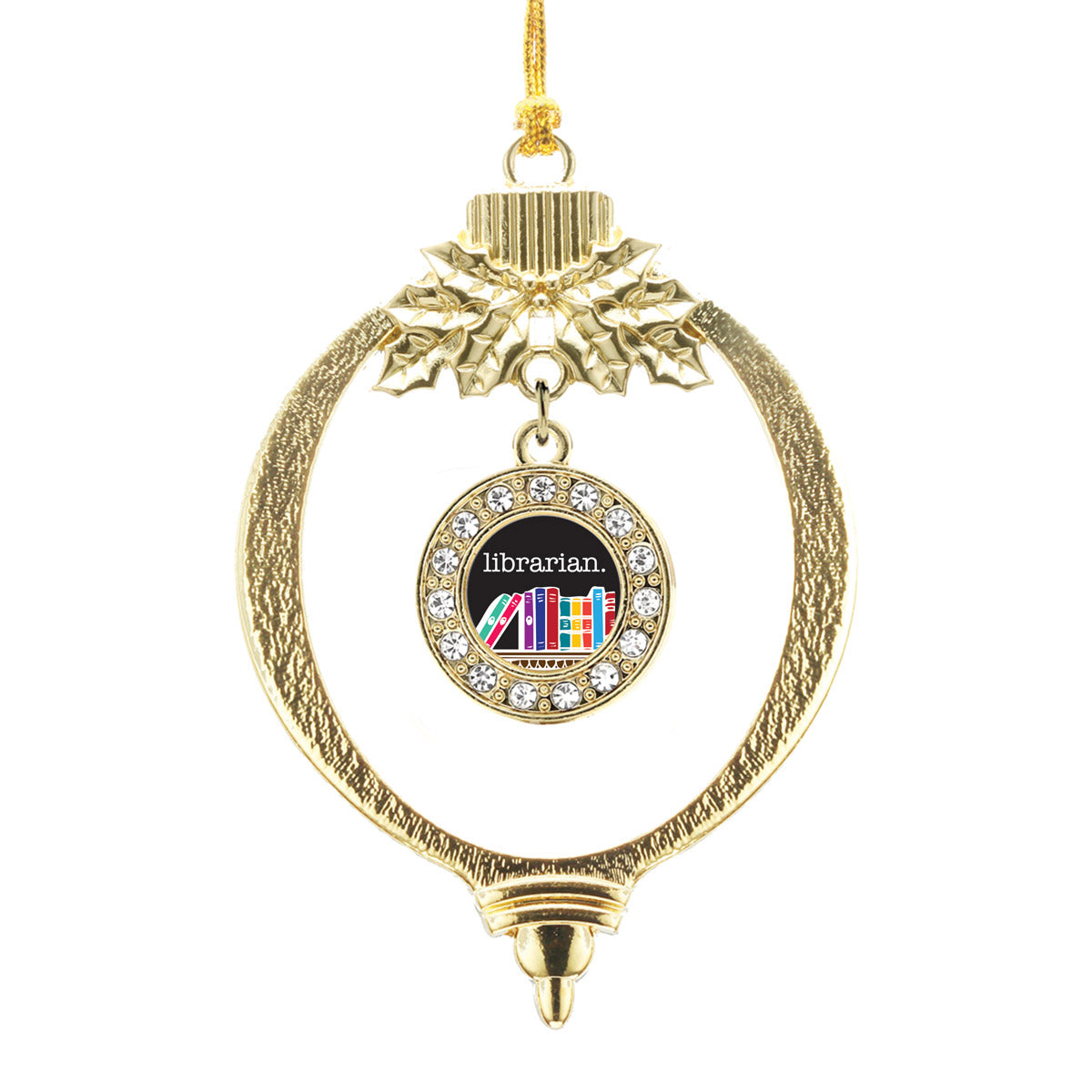 Our sparkling holiday ornament, equipped with a stylish silver rope and the Librarian circle charm, is crafted from white metal with a gold plated finish and accented with cubic zirconia stones.