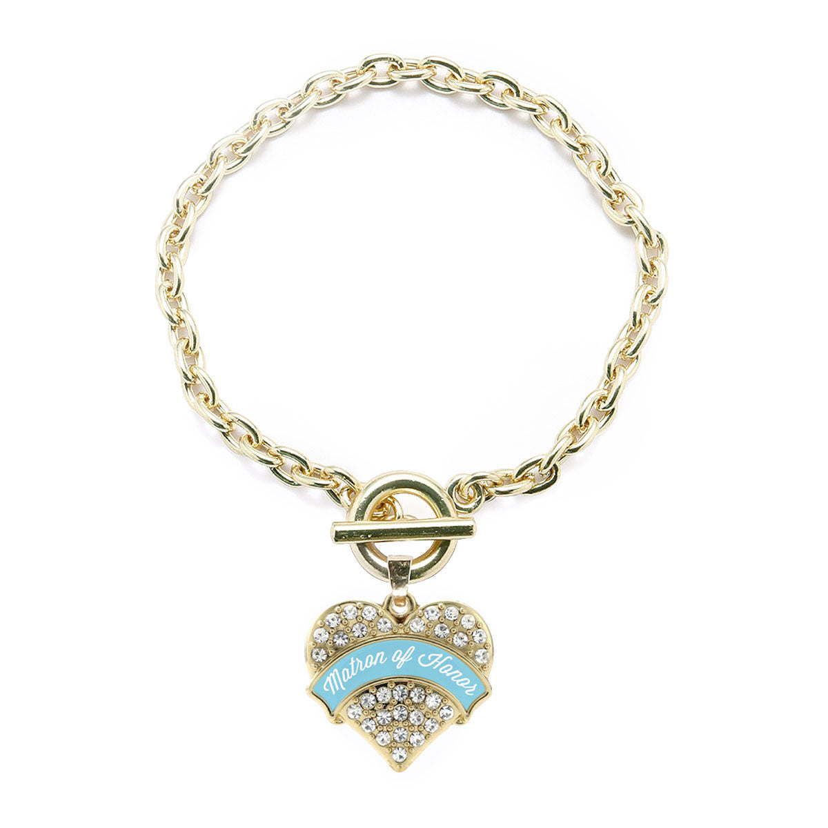 Gold Light Blue Matron of Honor Pave Heart Charm Toggle Bracelet