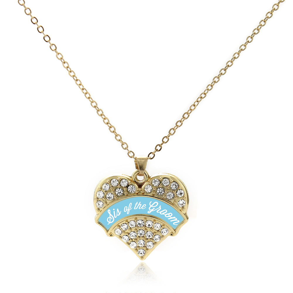 Gold Light Blue Sis of the Groom Pave Heart Charm Classic Necklace