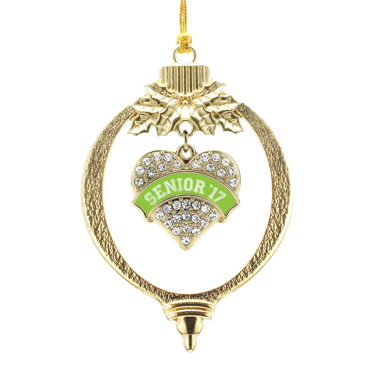 Gold Lime Green Senior 2017 Pave Heart Charm Holiday Ornament