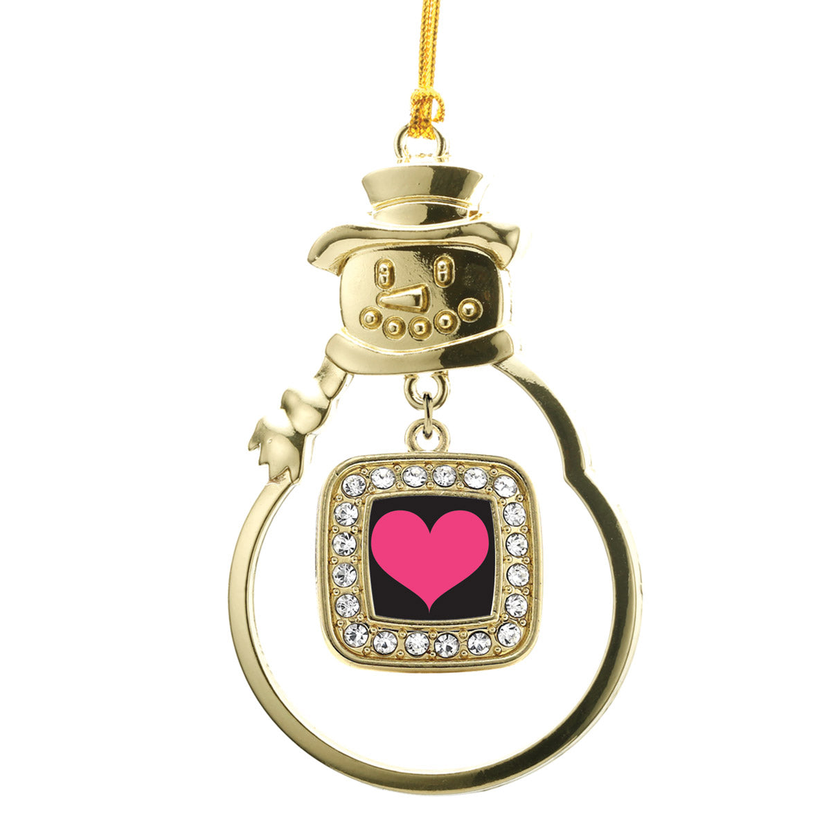 Our sparkling snowman ornament, equipped with a stylish silver rope and the Lovers square charm, is crafted from white metal with a gold plated finish and accented with cubic zirconia stones.