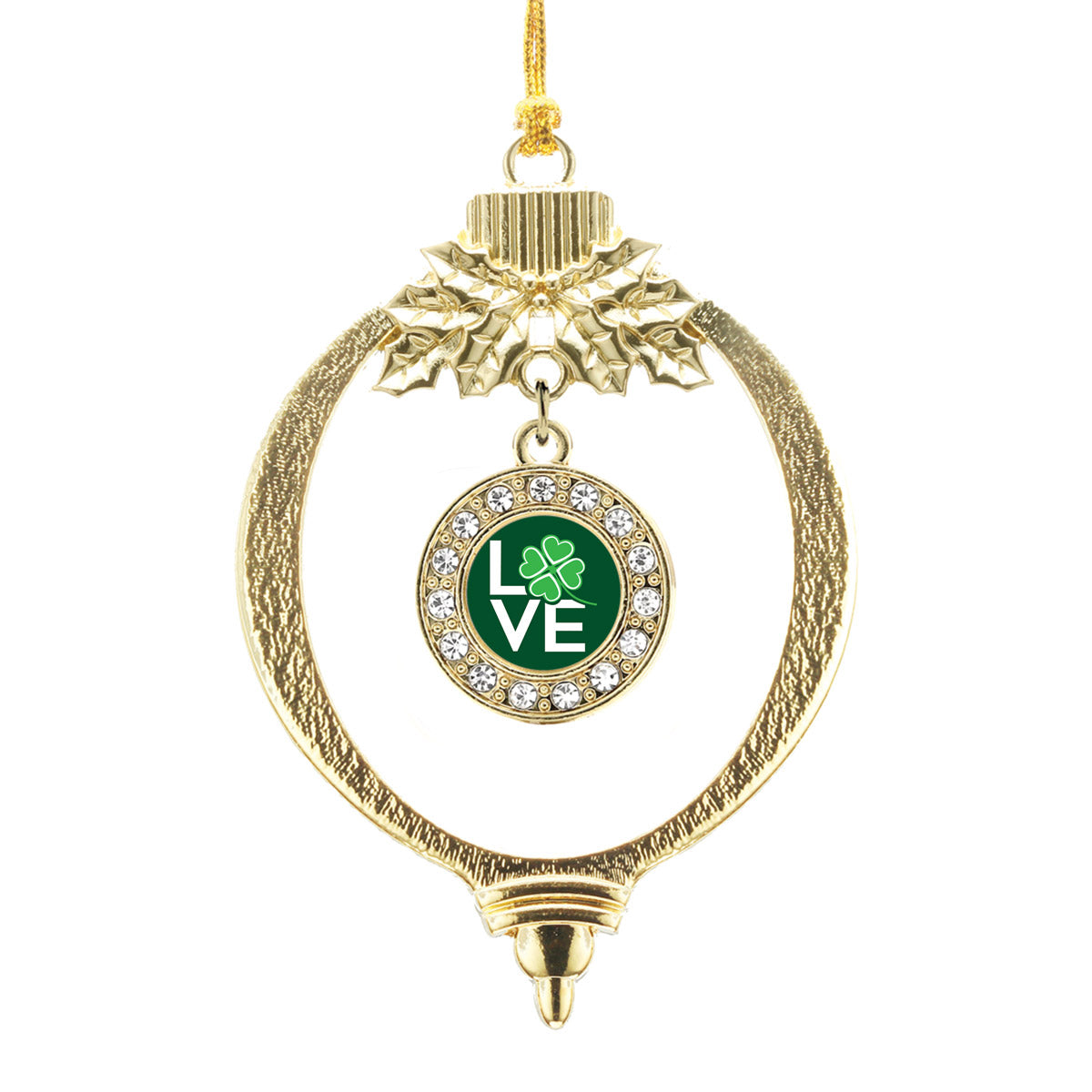 Gold Lucky Clover Of Love Circle Charm Holiday Ornament