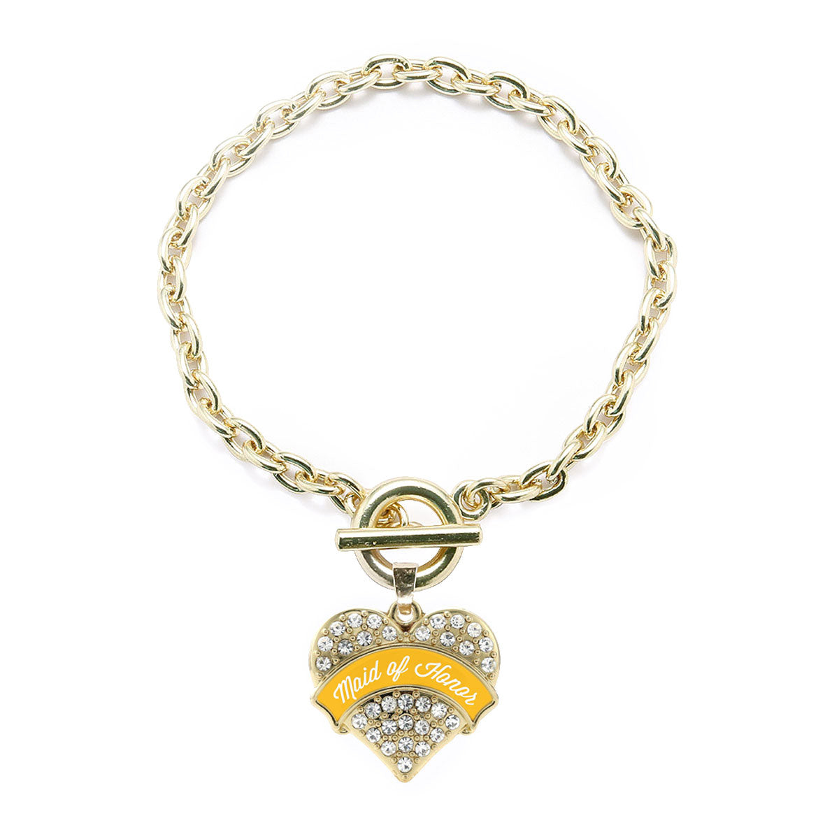 Gold Marigold Maid of Honor Pave Heart Charm Toggle Bracelet