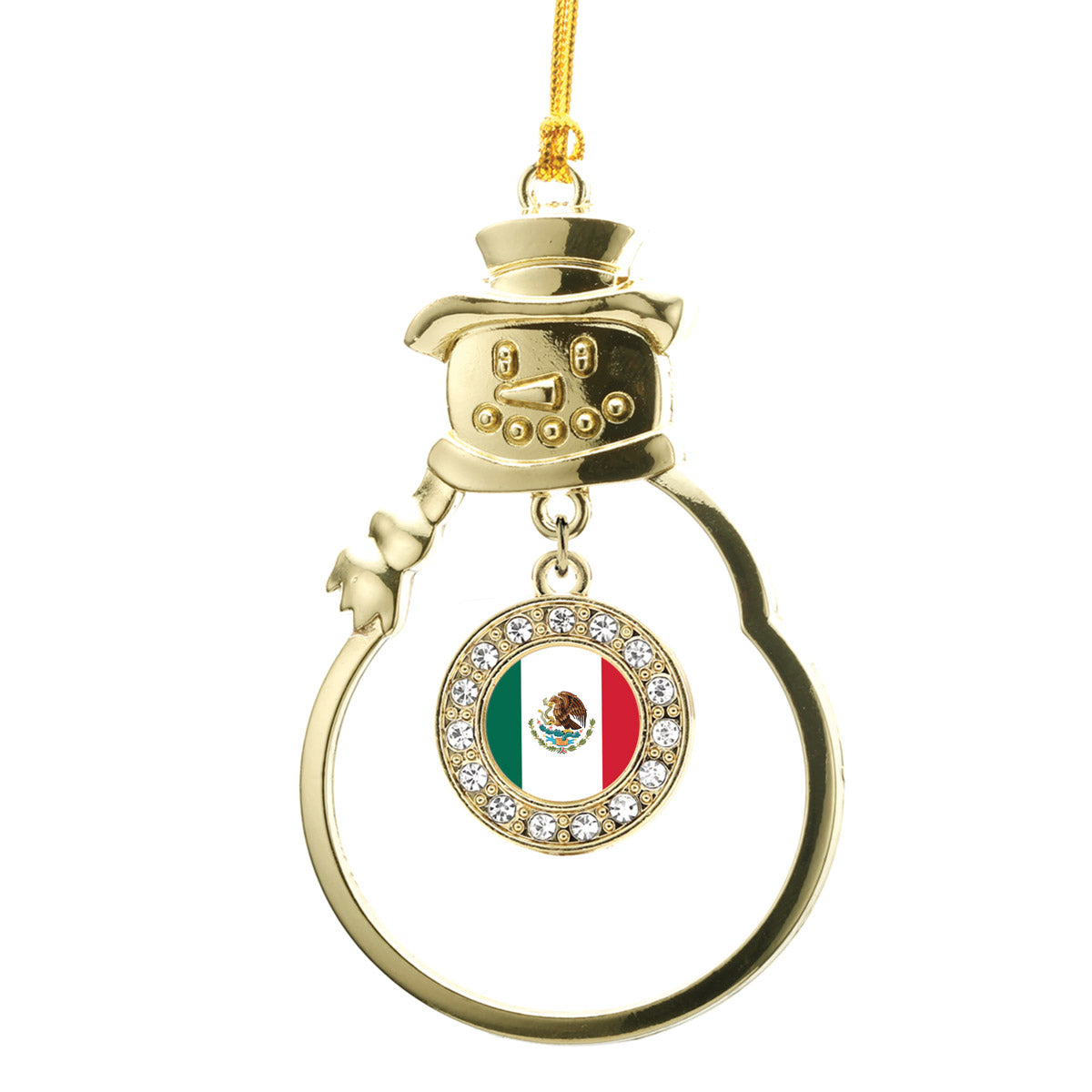 Gold Mexican Flag Circle Charm Snowman Ornament