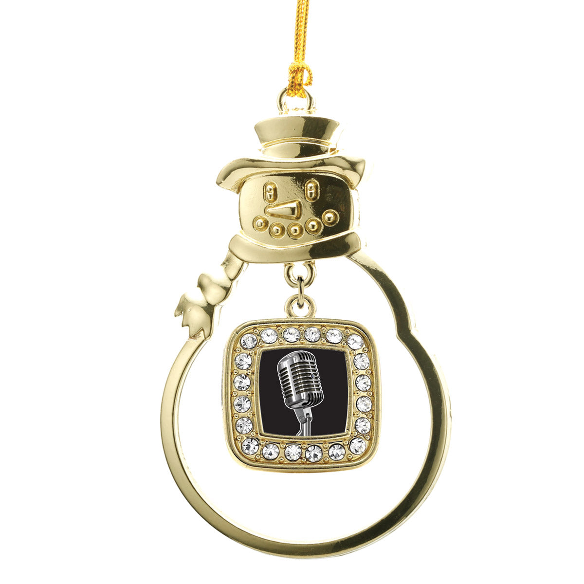 Gold Microphone Square Charm Snowman Ornament