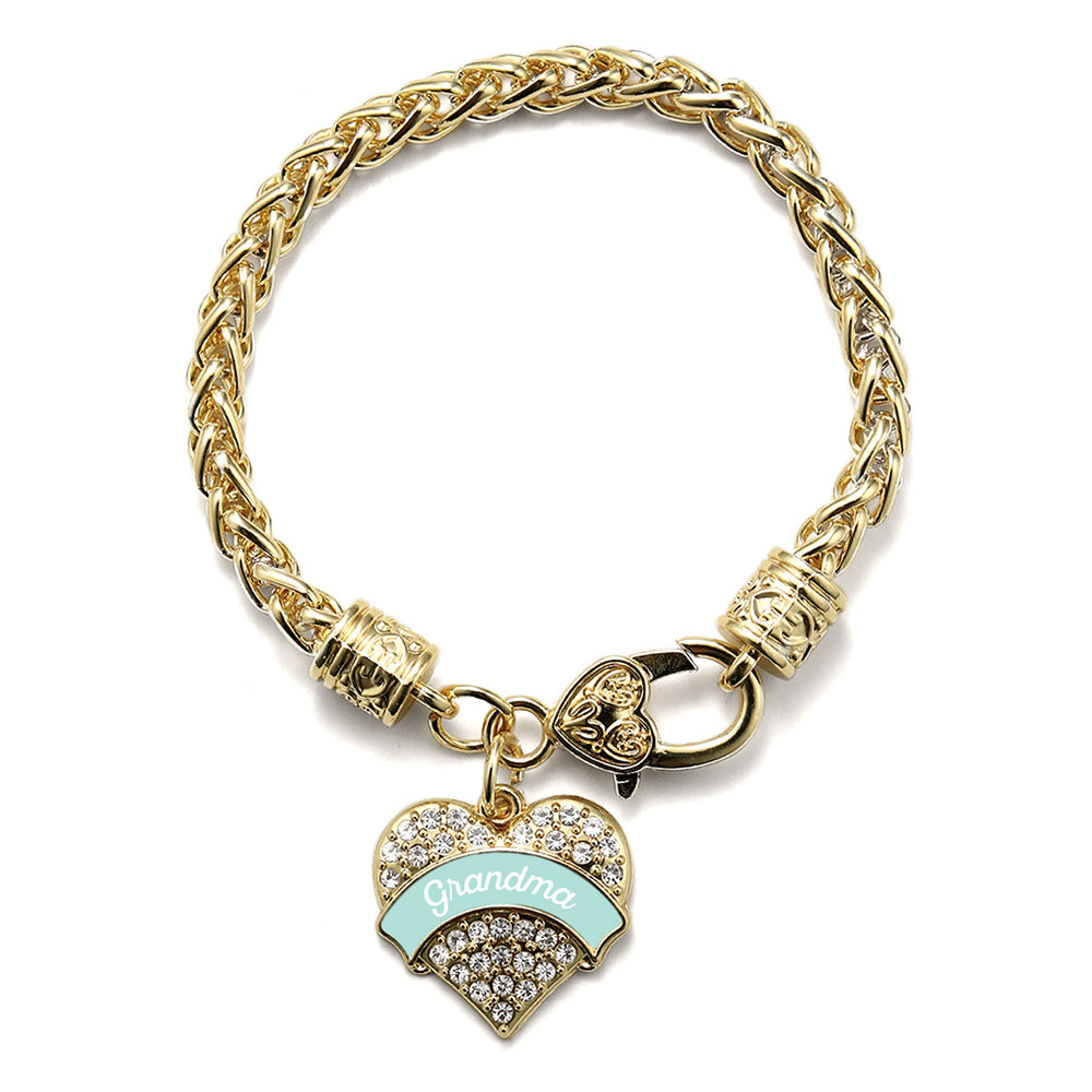 Gold Mint Grandma Pave Heart Charm Braided Bracelet