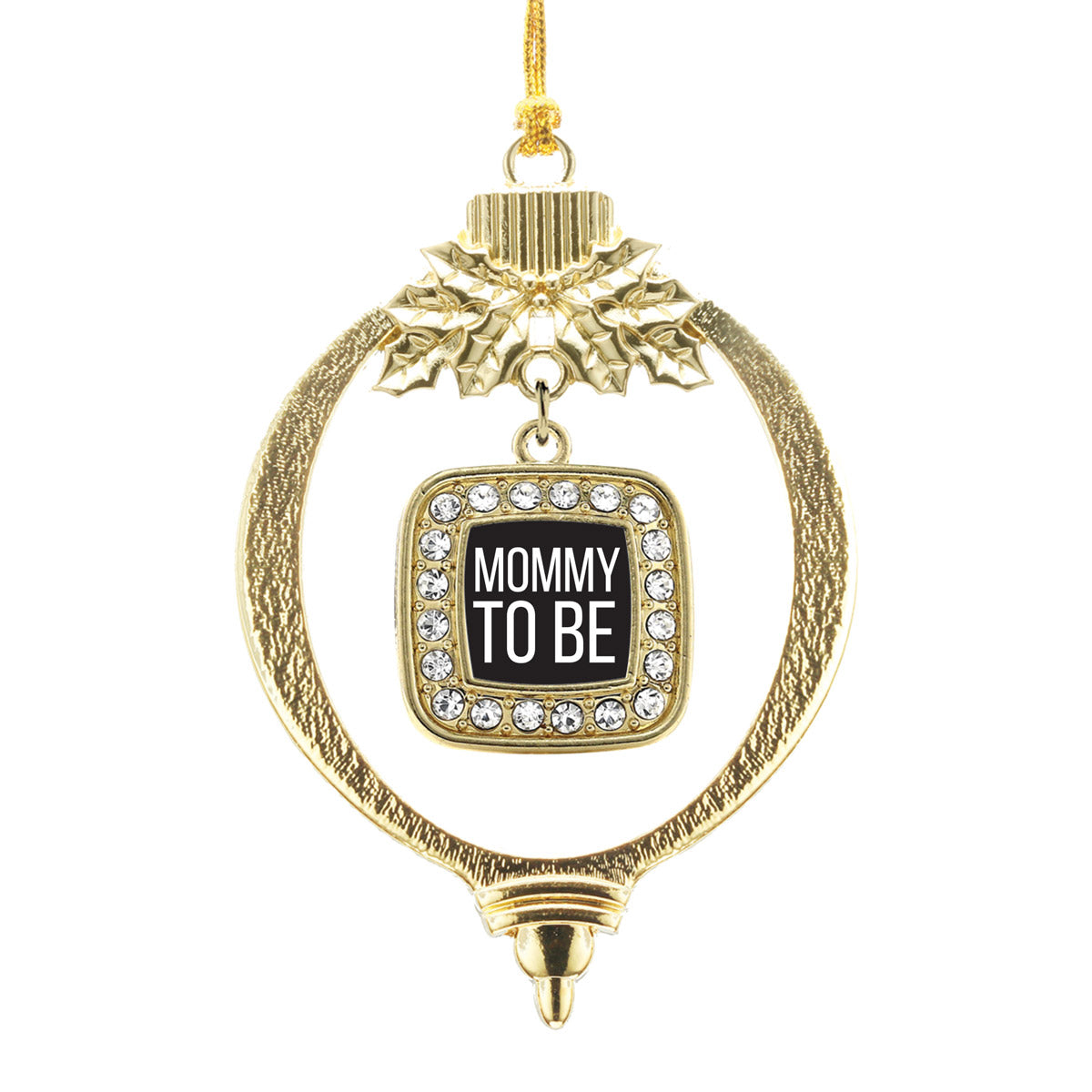 Gold Mommy To Be White Square Charm Holiday Ornament