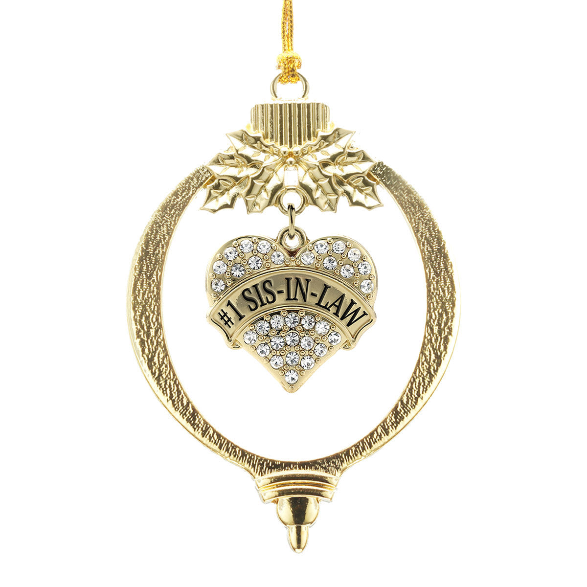 Gold #1 Sis-In-Law Pave Heart Charm Holiday Ornament