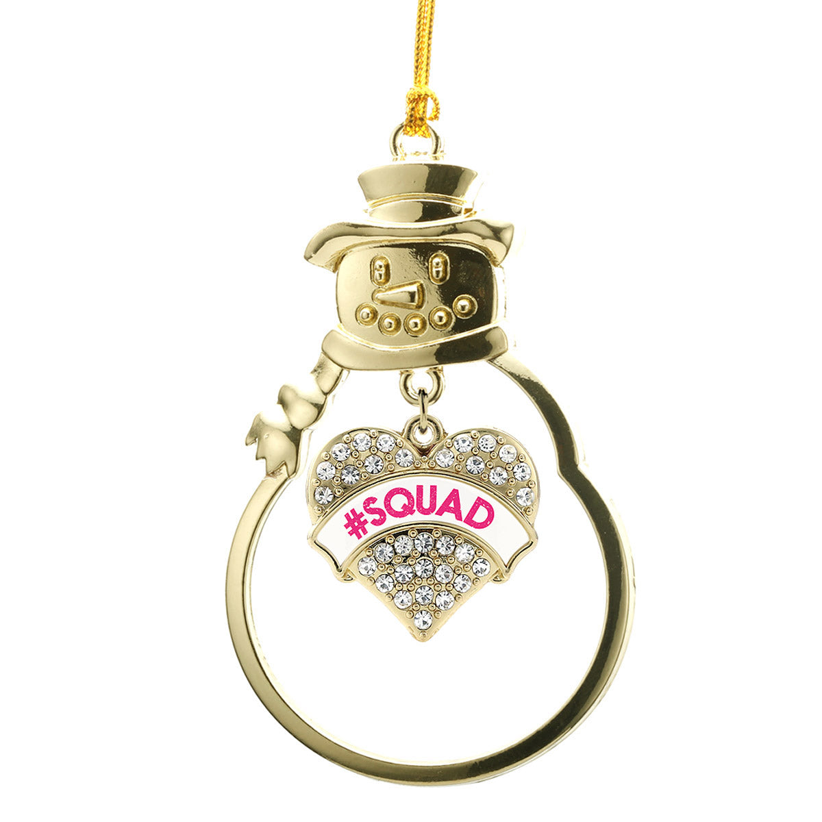 Gold #SQUAD White Candy Pave Heart Charm Snowman Ornament