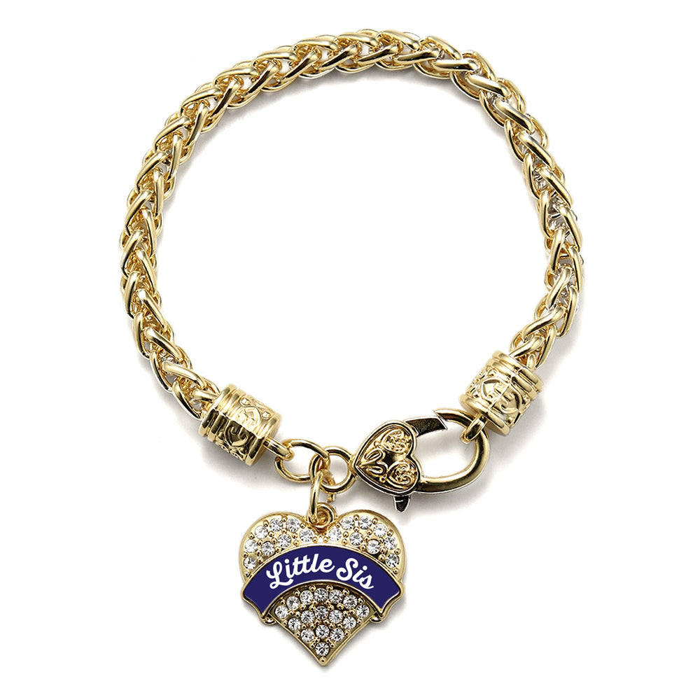 Our sparkling braided bracelet, equipped with a stylish lobster claw clasp and the Navy Blue Little Sister pave heart charm, is crafted from white metal with a gold plated finish and accented with cubic zirconia stones.
