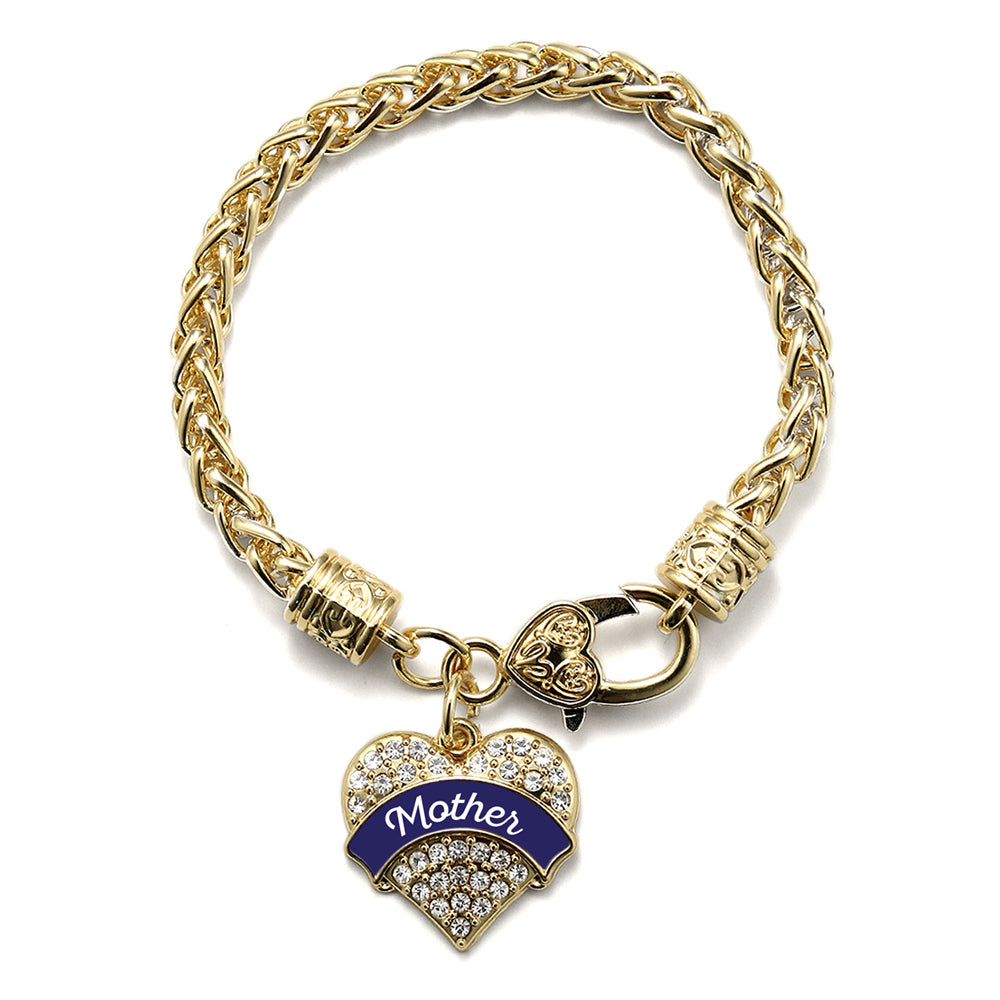 Our sparkling braided bracelet, equipped with a stylish lobster claw clasp and the Navy Blue Mother pave heart charm, is crafted from white metal with a gold plated finish and accented with cubic zirconia stones.