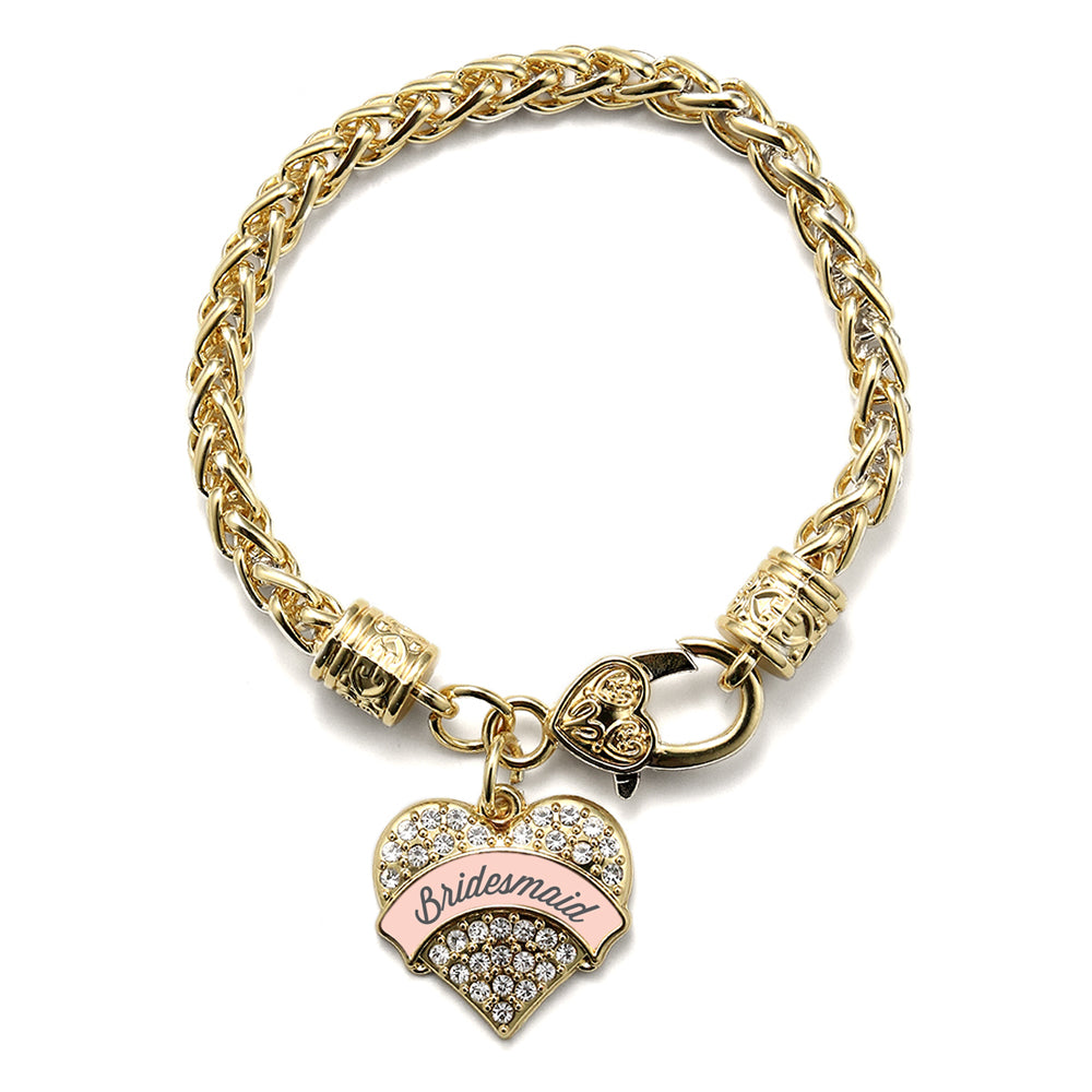 Gold Nude Bridesmaid Pave Heart Charm Braided Bracelet
