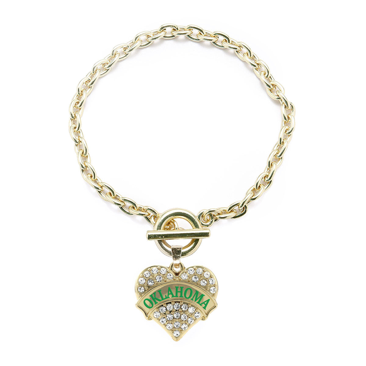 Gold Oklahoma Pave Heart Charm Toggle Bracelet