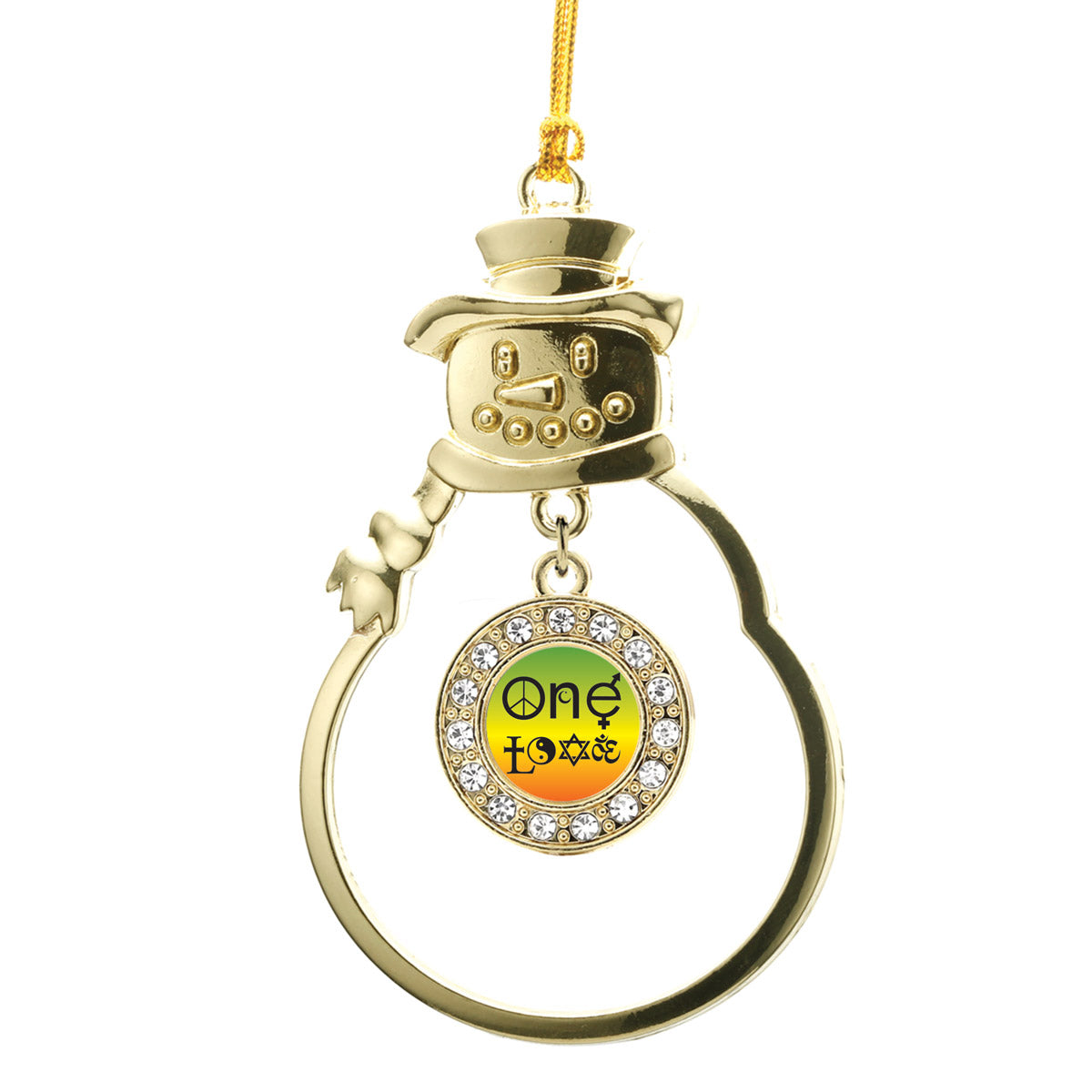 Gold One Love Coexist Circle Charm Snowman Ornament