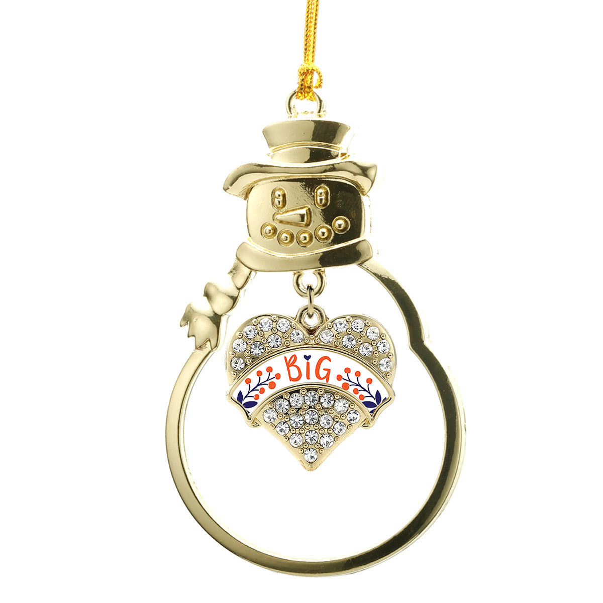 Gold Orange and Navy Blue Big Pave Heart Charm Snowman Ornament
