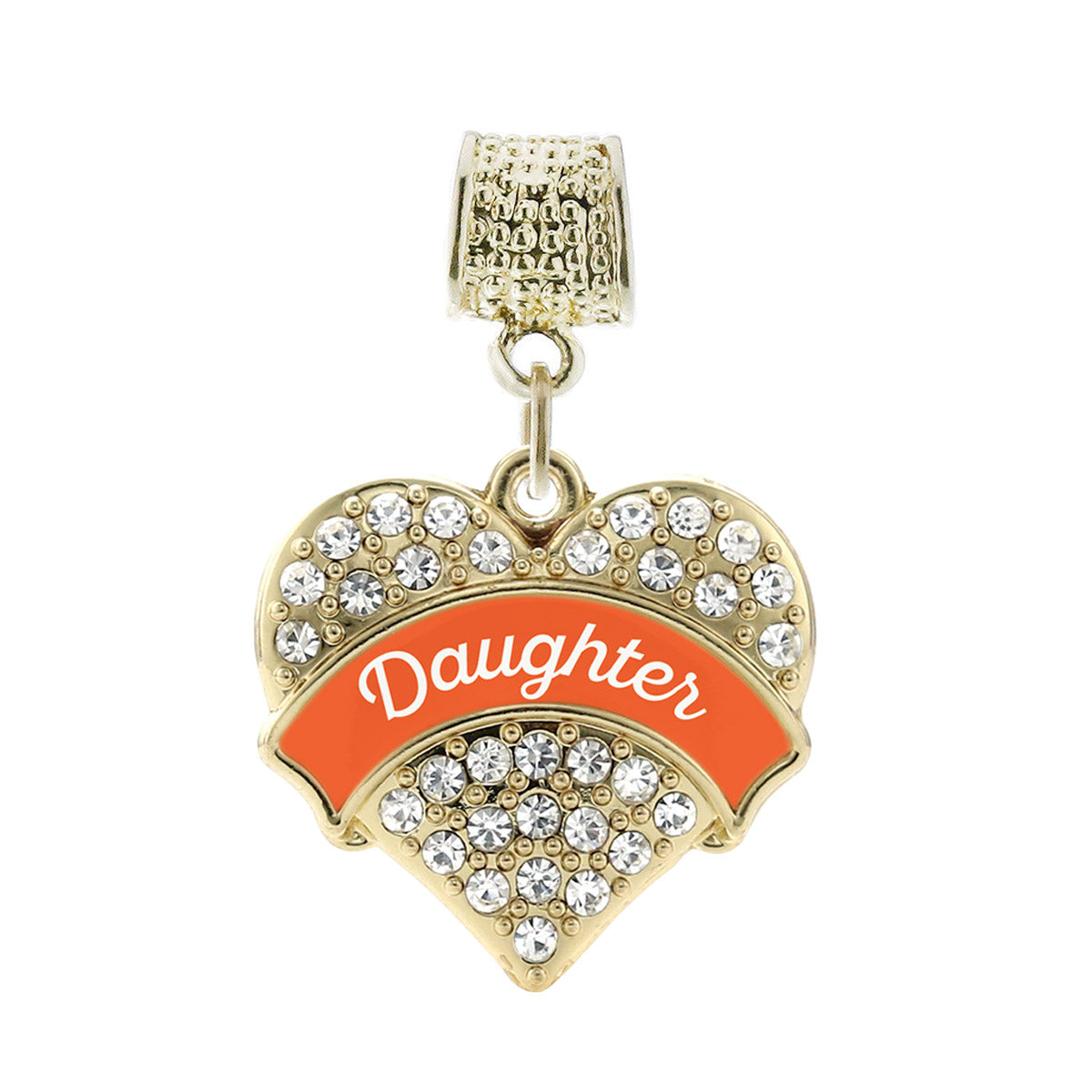 Our sparkling memory charm, equipped with a stylish charm attachment ring and the Orange Daughter pave heart charm, is crafted from white metal with a gold plated finish and accented with cubic zirconia stones.