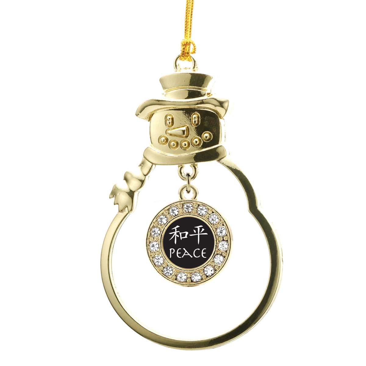 Gold Peace In Chinese Circle Charm Snowman Ornament