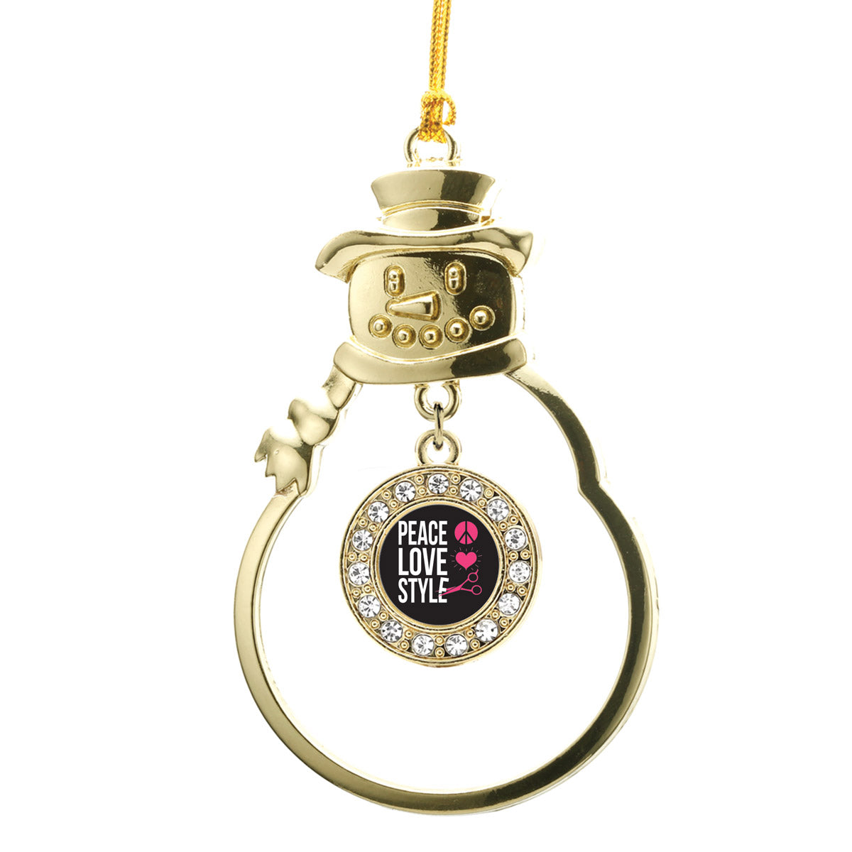 Gold Peace, Love, And Style Circle Charm Snowman Ornament