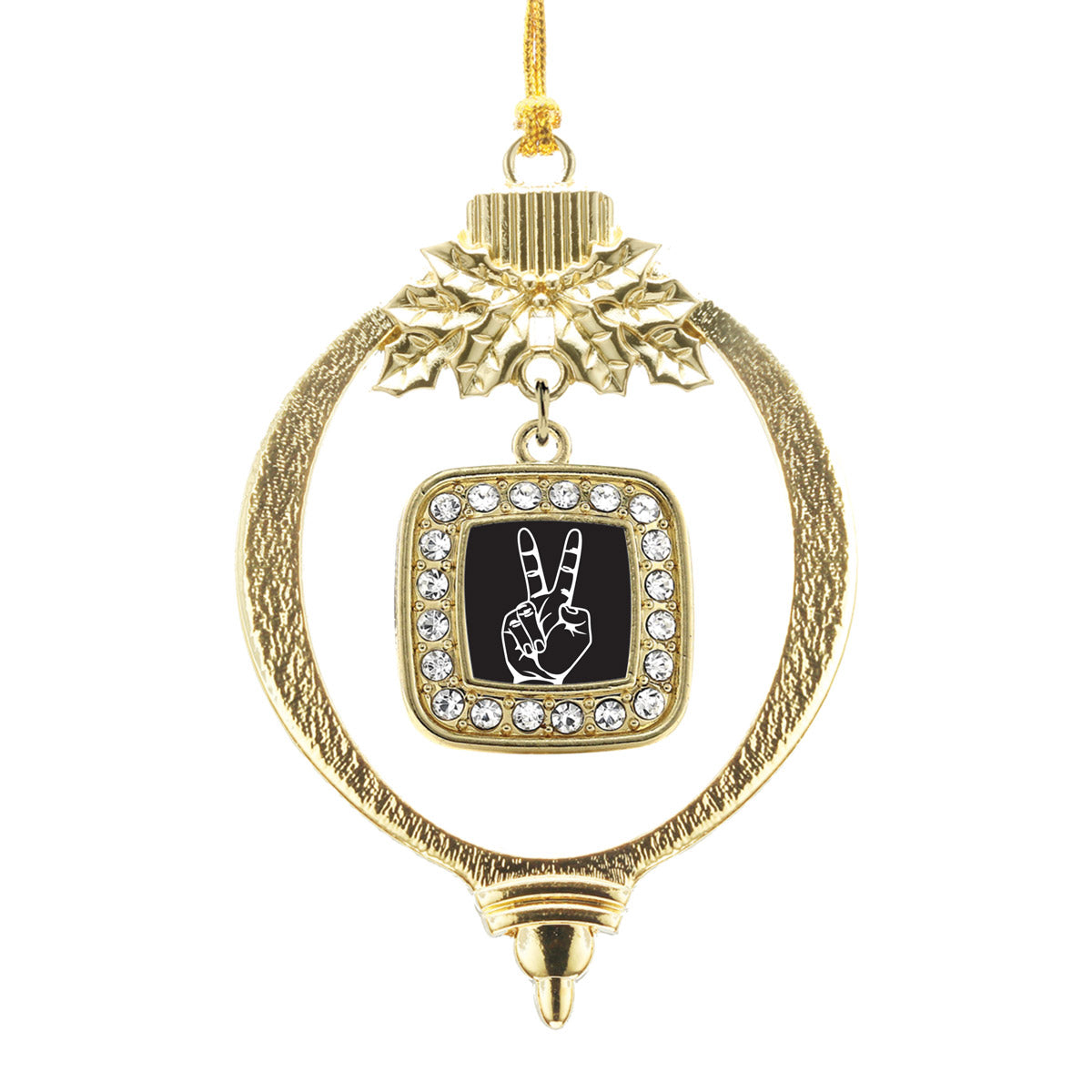 Gold Peace Sign Language Interpreter Square Charm Holiday Ornament