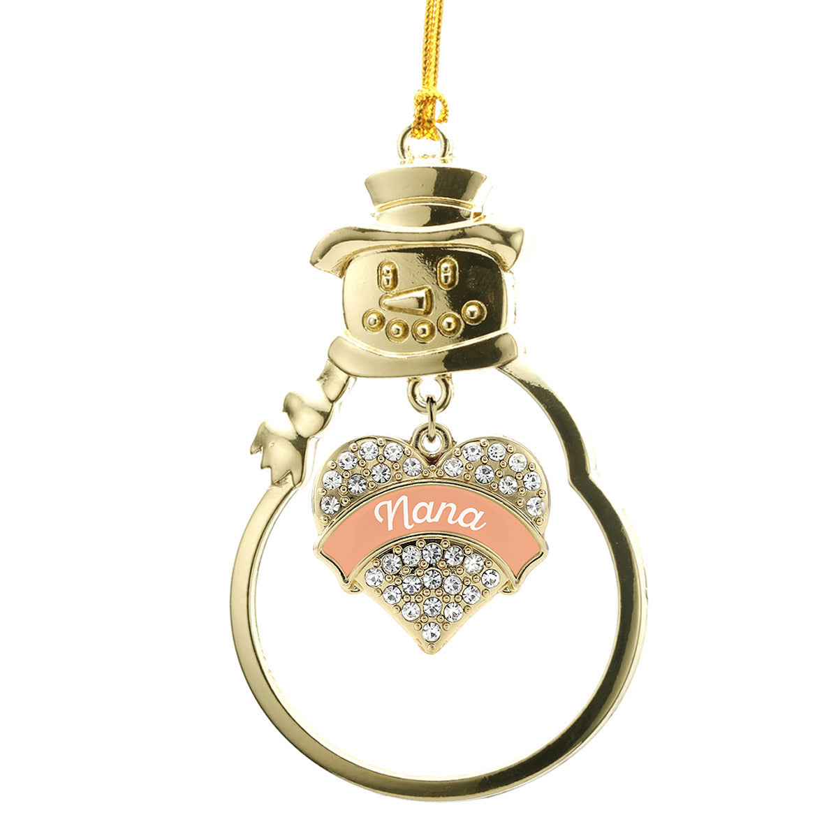 Gold Peach Nana Pave Heart Charm Snowman Ornament