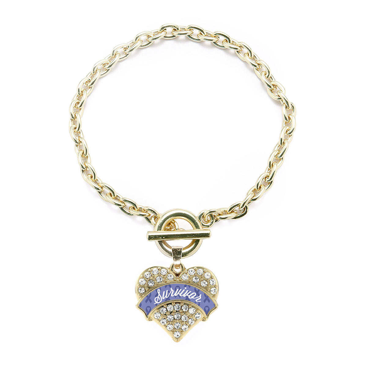 Gold Periwinkle Survivor Pave Heart Charm Toggle Bracelet