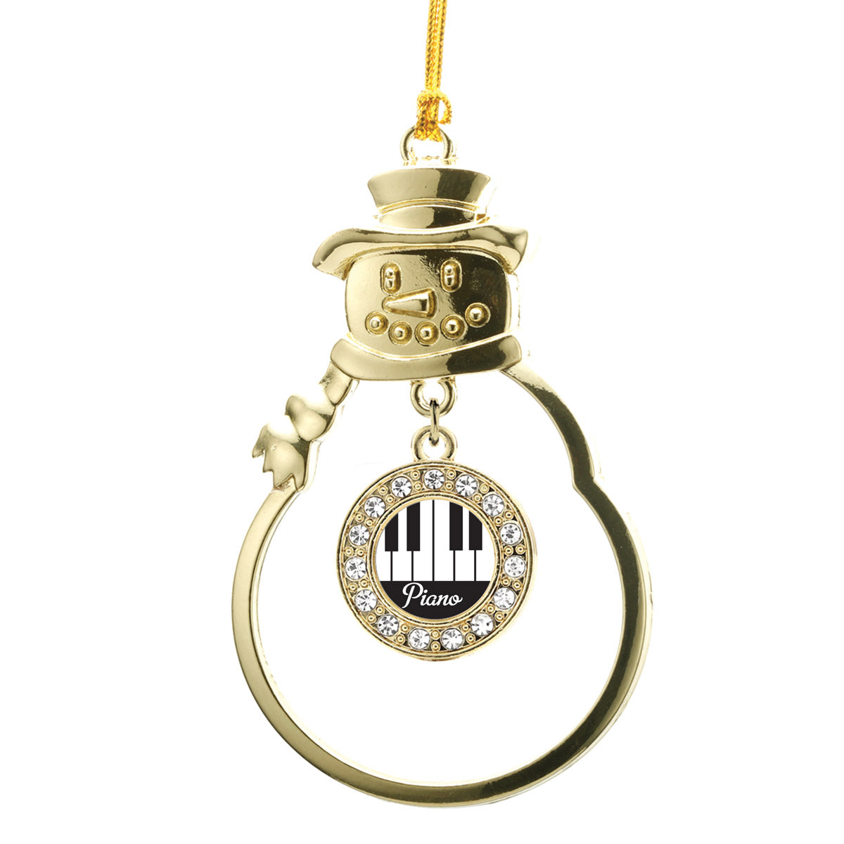 Gold Piano Lovers Circle Charm Snowman Ornament
