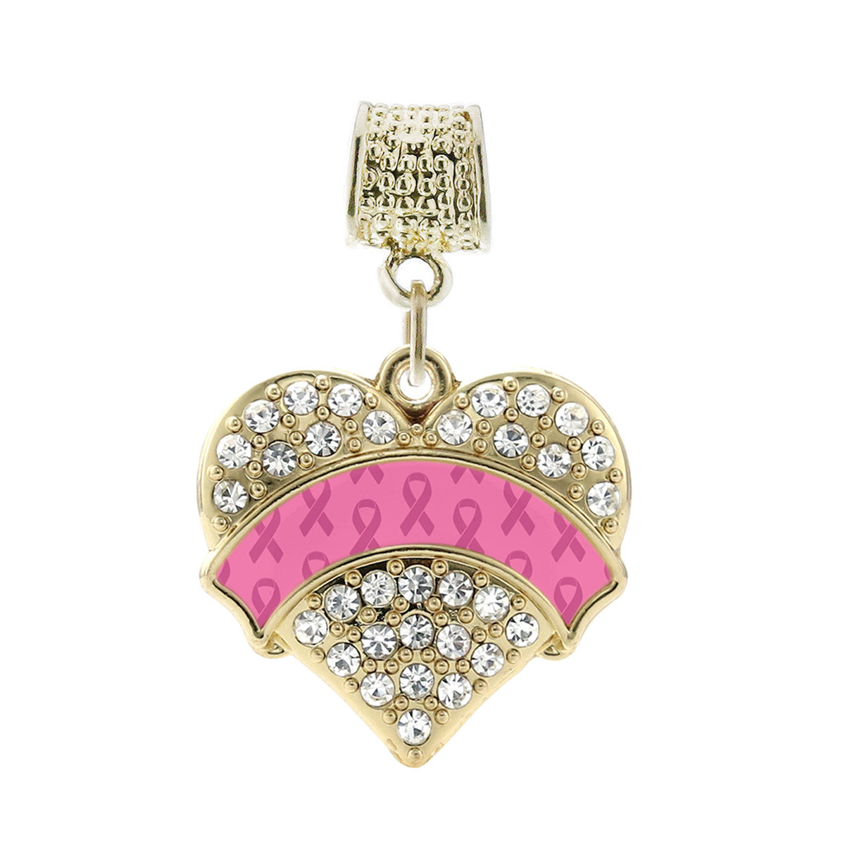 Gold Pink Ribbon Support Pave Heart Memory Charm