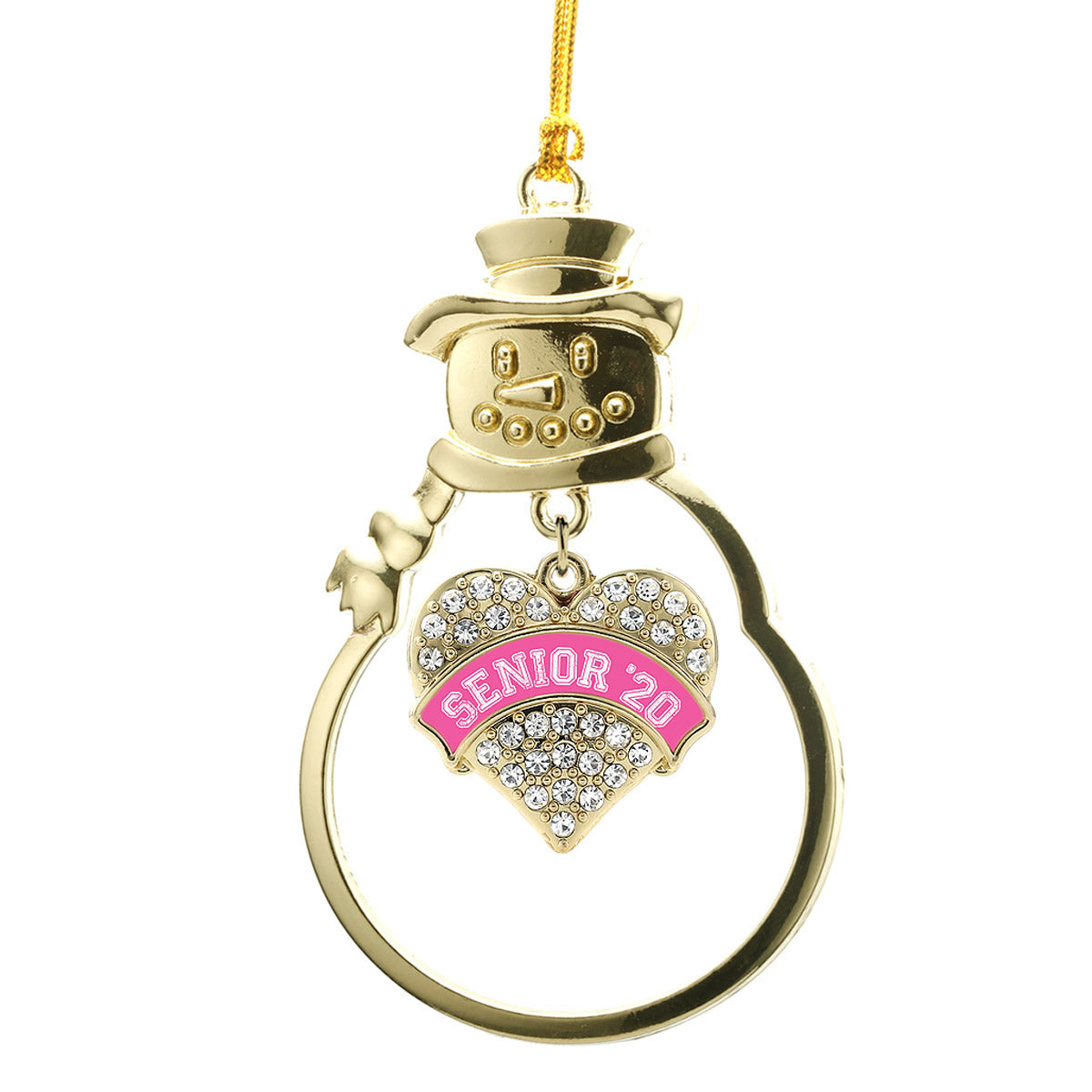 Gold Pink Senior 2020 Pave Heart Charm Snowman Ornament