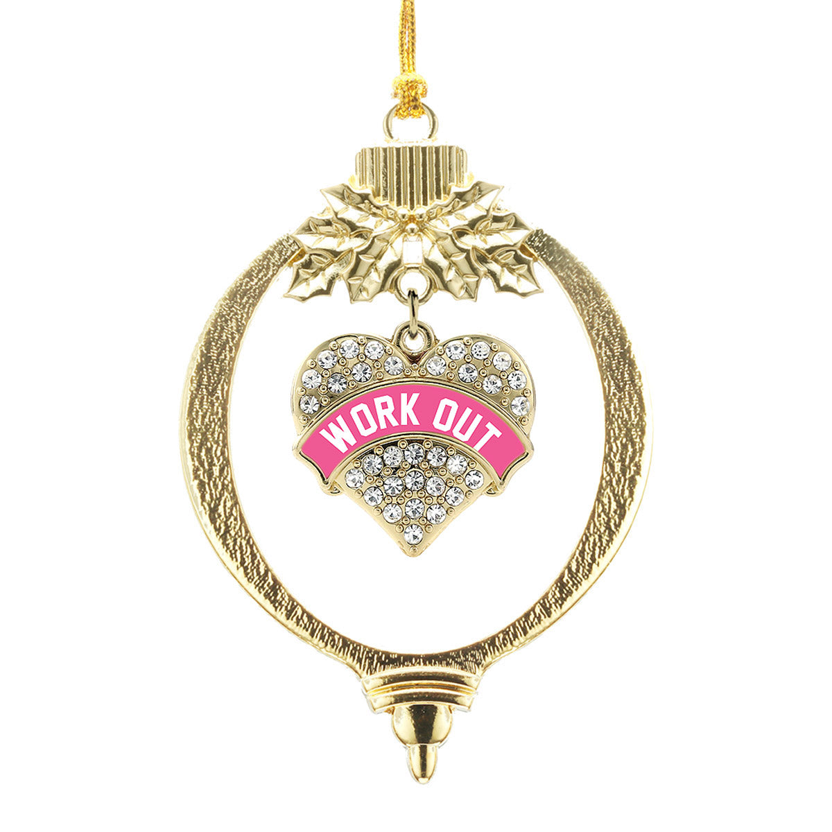 Gold Pink Work Out Pave Heart Charm Holiday Ornament